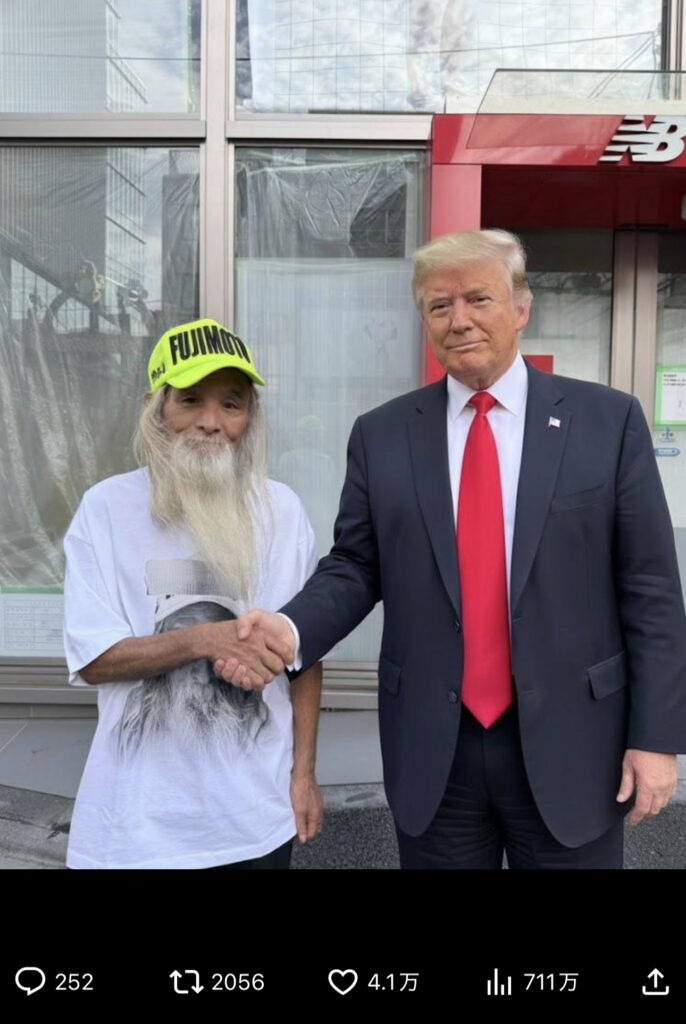投稿には「本日はお会いできて大変光栄でした、ドナルド・トランプ様。日本を再び偉大にしましょう!」と添えられ、瞬く間に700万インプレッション(29日21時現在)を突破。