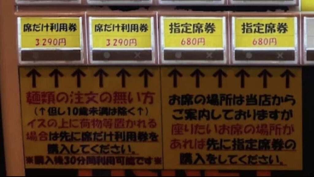 「席だけ利用券」は、もしかするとひとりでも多くのお客様に早く商品を提供したいという意思表示かもしれないが、一般的には高額な値付けである。「指定席券」は、空いた席から案内していた際に客からの要望で口論になった経緯を感じさせる。