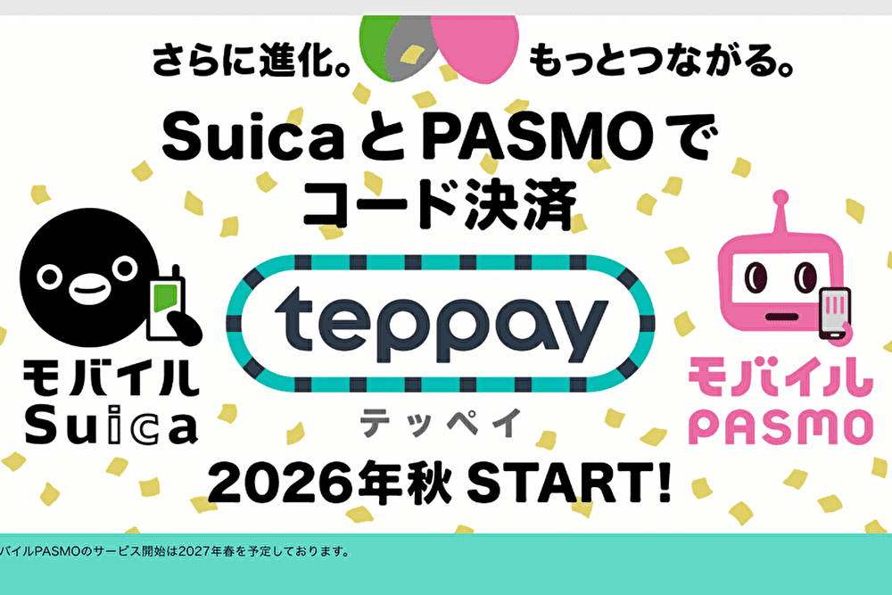 モバイル Suica/モバイル PASMO に統合される新コード決済サービス 「teppay(テッペイ)」 が、2026年秋から提供されることが明らかになった。