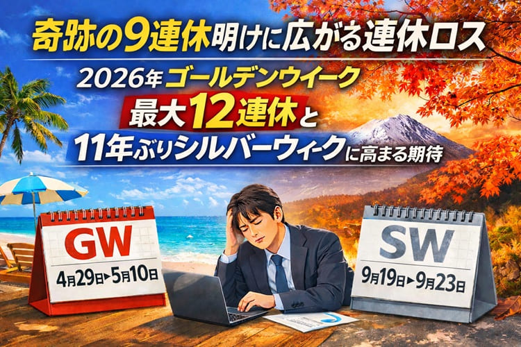 「奇跡の9連休」と呼ばれた年末年始が終わり、仕事始めを迎えた日本社会。Xには早くも“連休ロス”の声があふれる一方、2026年はゴールデンウイークとシルバーウイークに大型連休の可能性が広がる。祝日配置の妙とネットの反応から、日本人と休暇の距離感を読み解く。