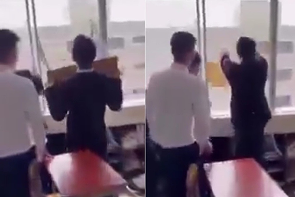 拡散されている動画では、生徒が机を持ち上げ、教室の窓から外へ投げ捨てる様子が映っている。