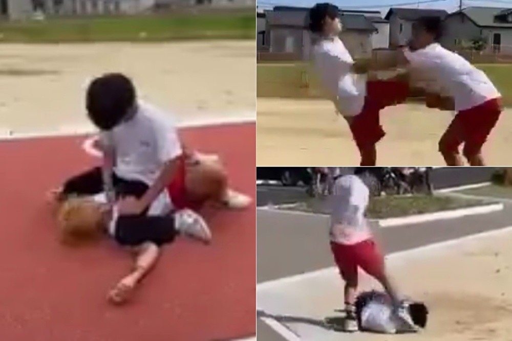 1件目の動画には、2人の生徒が向かい合って喧嘩を始め、加害生徒が被害生徒のお腹付近を執拗に蹴る場面が映っている。被害者は地面にうずくまり防御出来ない状況に陥り、加害生徒その後もお腹や首回りを複数回蹴られる様子が記録されている。この映像は、前回の校内暴行と同一人物とみられる加害生徒が関与しているとネット上で指摘されている。