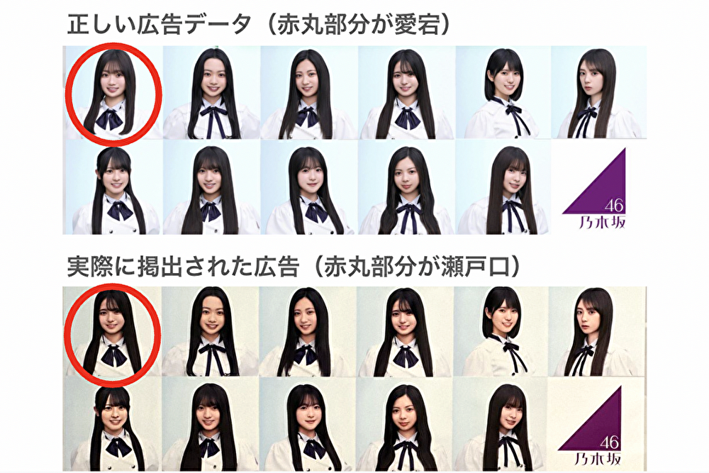 なんと、広告内に掲載されるはずだった6期生11人の写真のうち、瀬戸口心月の画像が2枚使用され、愛宕心響の写真が欠けていることが判明。ファンの間で波紋が広がった。