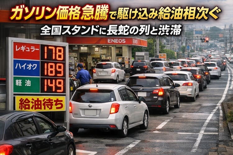 コストコ併設や国道沿いの安いスタンドが特に狙われ、数キロ級の渋滞や在庫切れも出ている。SNSでは「職場総出で来た」「並ぶ時間が損」「震災時の行列を思い出す」といった声が飛び交い、パニック買い的な雰囲気が広がっている。