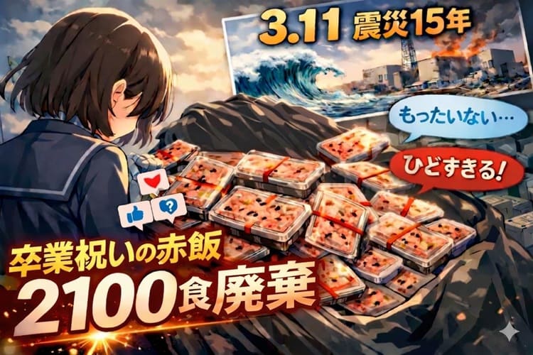 「電話1件で2100食を廃棄するのは極端すぎる」「SDGsを掲げる時代に大量の食料を捨てるのか」「卒業という人生の大切な節目を祝うのは自然なのに、一部のクレームに過剰反応しすぎ」「震災から15年経ち、復興の象徴としてむしろ祝うべき」「非常用缶詰パンに変わった生徒たちの失望を思うと残念」など、廃棄判断への不満が噴出している。