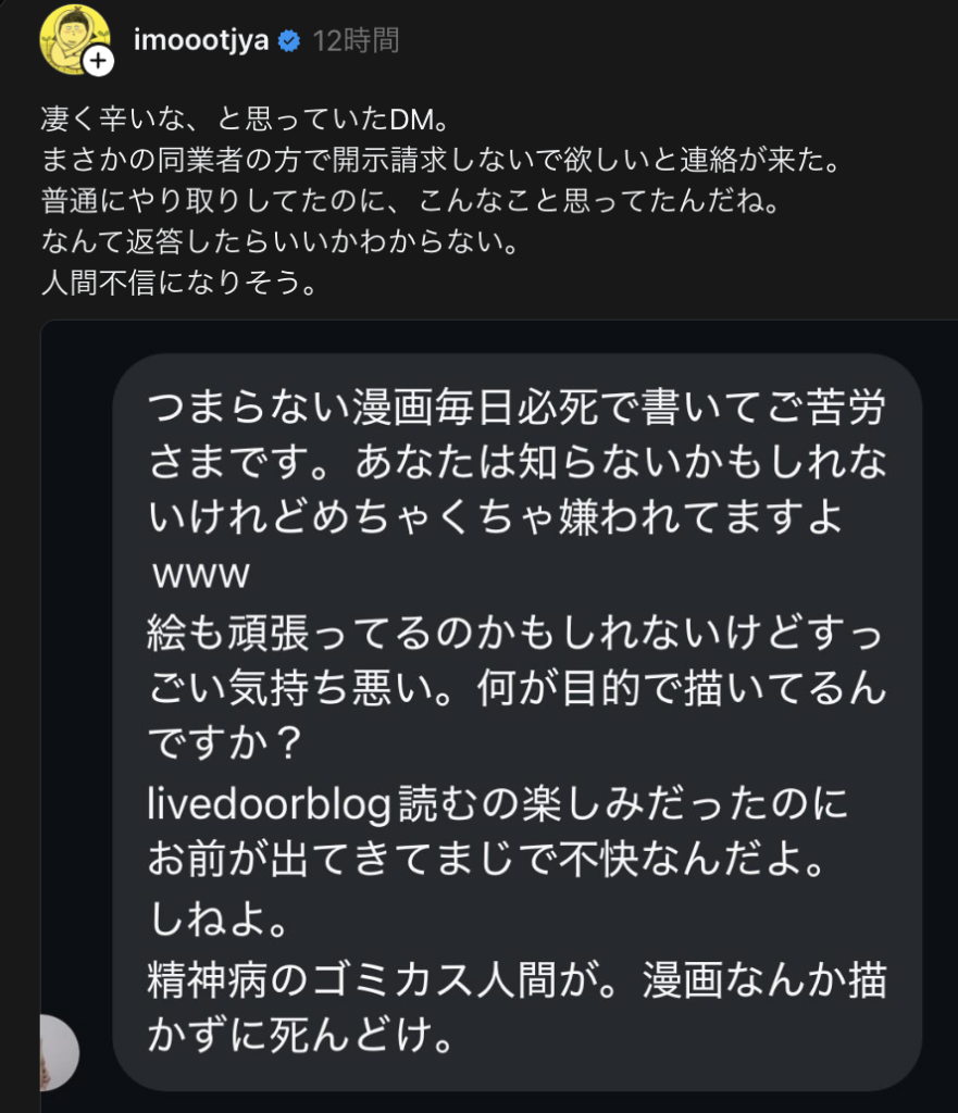 「お前も〇〇ってやつも本気でつまらない」と作品&人格批判、
