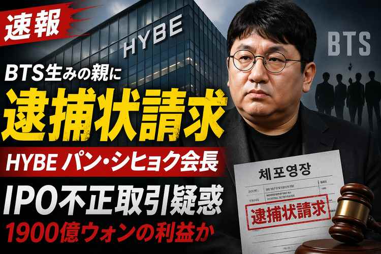 韓国警察が4月21日、韓国芸能大手HYBEの創業者で会長のパン・シヒョク氏(53)に対する逮捕状を請求した。BTSを世界的グループへ押し上げた人物に、HYBE上場前の株式取引を巡る資本市場法違反の疑いが浮上した格好である。ロイターによると、警察はパン氏が初期投資家に虚偽の情報を伝え、関係者側の私募ファンドへ株式を売却するよう誘導した疑いを持っている。
