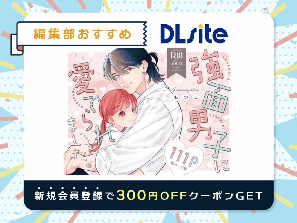 DLsiteの初回無料会員登録でもらえる300円クーポンを利用すると、『強面男子に愛でられました。』を990円→591円で読めるので手頃な価格で読みたい人にもピッタリです。