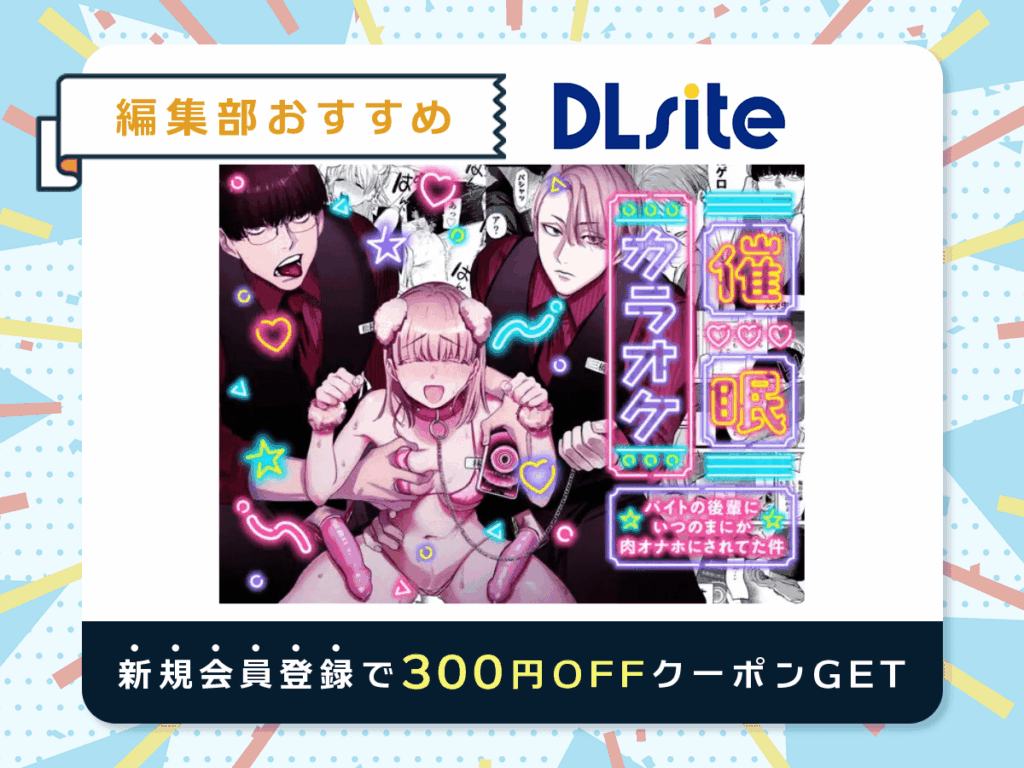 DLsiteの初回無料会員登録でもらえる300円クーポンを利用すると、『催眠カラオケ-バイトの後輩にいつのまにか肉オナホにされてた件-』を770円→200円で読めるので手頃な価格で読みたい人にもピッタリです。