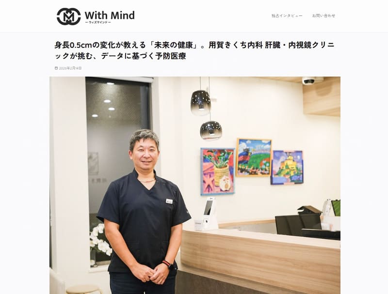 全身の「見える化」から運動療法の核心まで、用賀きくち内科 肝臓・内視鏡クリニックが描く予防医療の未来図を徹底解剖。「今日のメタボ、明日のロコモ」へかける菊池院長の挑戦の軌跡は、医療系メディア『ウィズマインド』の特集記事をご覧ください。