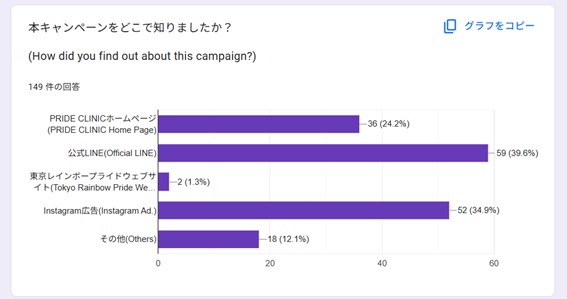 キャンペーンは、新宿二丁目のゲイバーでのフライヤー設置からスタート。その後、公式LINE(登録者1,000人超)やInstagram広告を通じて認知を拡大しました。TOKYO PRIDEの公式サイト経由の流入は限定的でしたが、草の根的なネットワークからの広がりを実感しています。